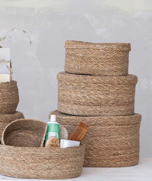 Oval Seagrass Basket w/ Lid
