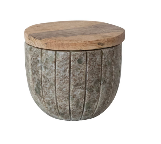 Marble Container w/ Wood Lid