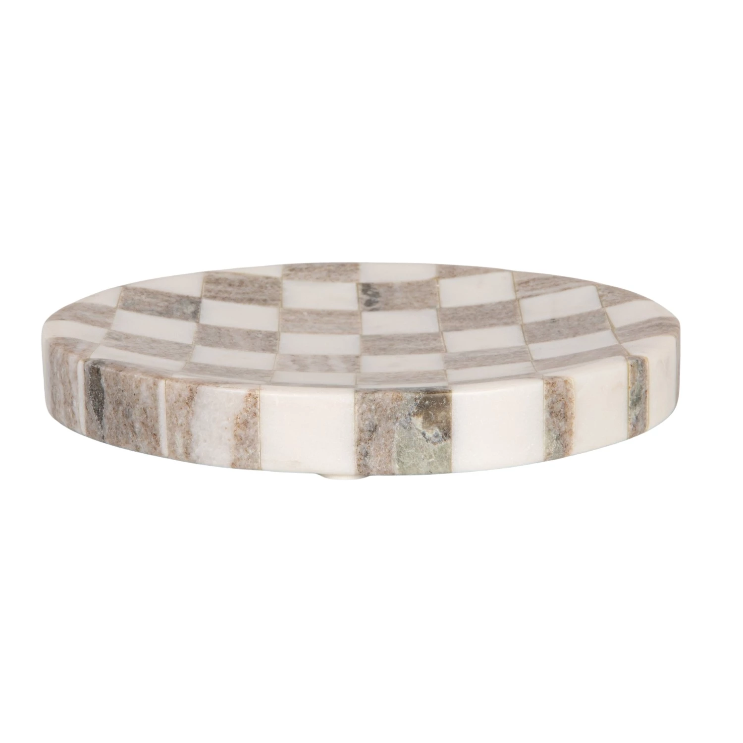 8" Round Marble Checkered Dish, Buff Color & White