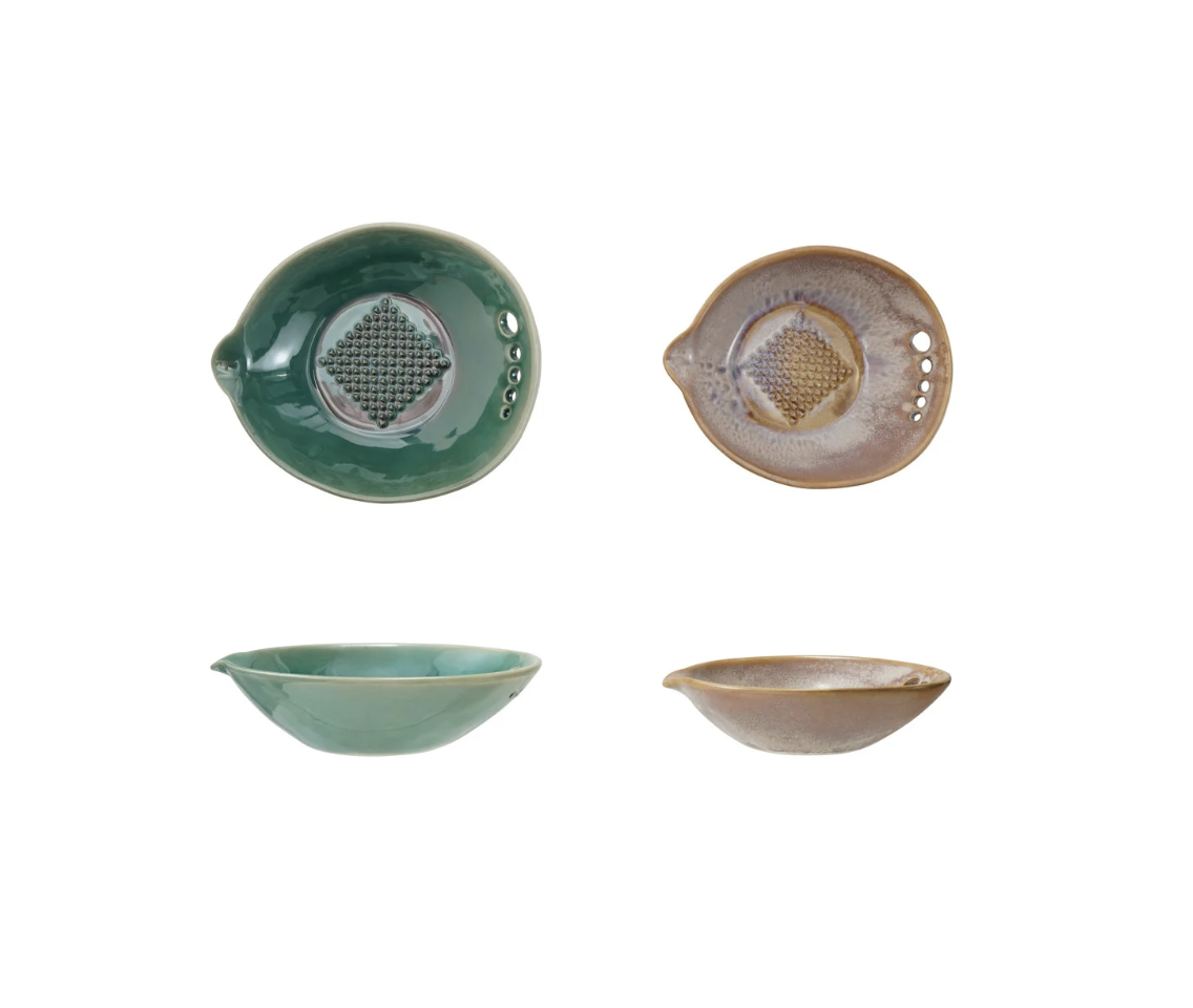Stoneware Garlic/Ginger Graters w/ Herb Strippers, Reactive Glaze, Multi Color (Each One Will Vary)
