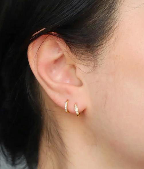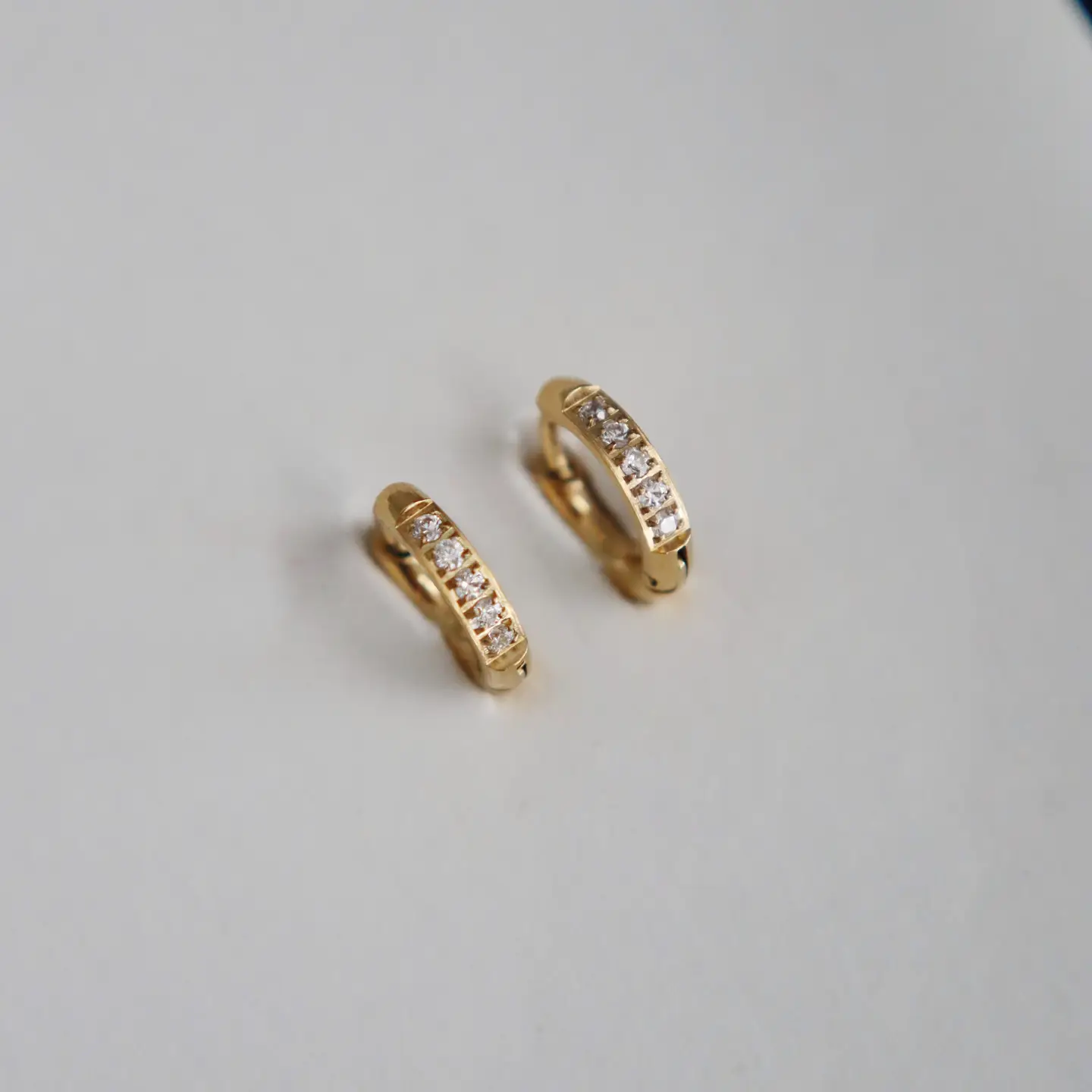Lightweight, comfortable and stylish, perfect for everyday wear. Small, dainty huggies, features 5 small cubic zirconia stones.