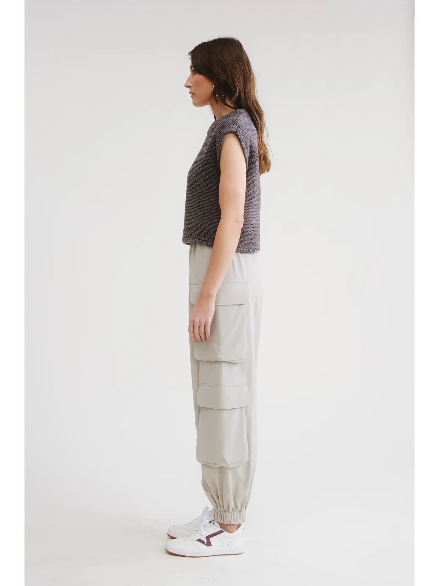 Our Tana Sweater Top is a sleeveless lightweight sweater top in Charcoal.